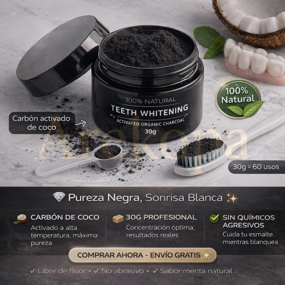 El Polvo de Carbón Blanqueador Dental es el aliado perfecto para eliminar esas manchas que el cepillado común no logra quitar 😬➡️😁